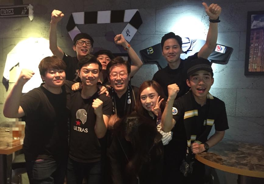 이재명 성남시장이 성남FC팬들과 함께 응원하고 있다.<사진=이재명 성남시장 SNS >