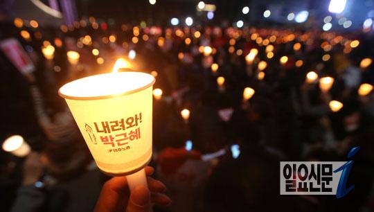 다함께 "박근혜는 하야하라"고 외치는 시민들
