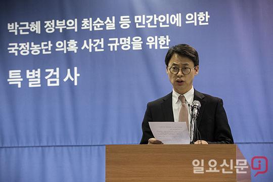 [일요신문] ‘박근혜 정부의 최순실 등 민간인 국정농단 사건’ 수사 특별검사팀 이규철 대변인이 30일 오후 서울 대치동 특검 사무실에서 브리핑을 하고 있다. 이날 이 대변인은 국정조사 특위 위증과 관련, 철저히 수사해 엄중하게 처벌할 것이라고 밝혔다. 2016.12.30 고성준 기자