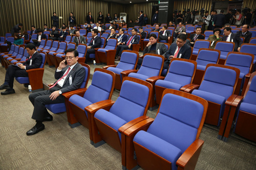 [일요신문] 정우택 새누리당 원내대표가 6일 오후 국회에서 ‘제13차 상임전국위원회’에 참석해 회의 시작을 기다리고 있다. 이날 상임전국위원회는 정족수 미달로 열리지 못 했다.