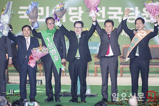 [일요신문] 박지원 국민의당 비상대책위원장(가운데)이 15일 오후 경기도 고양시 일산 킨텍스에서 열린 국민의당 전당대회에서 당대표에 당선 된 후 손을들어 환호하고 있다. 2017.1.15 고성준 기자