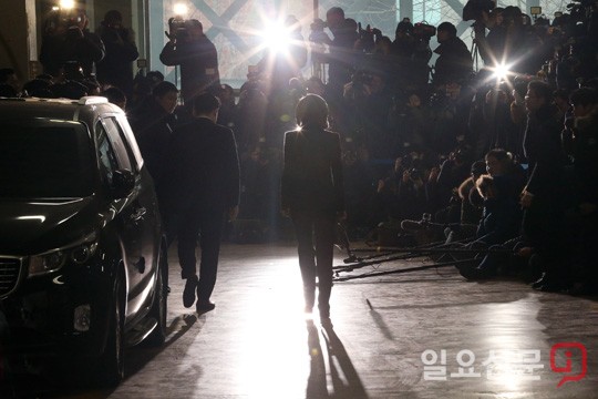 [일요신문] 조윤선 문화체육관광부 장관이 17일 오전 피의자 신분으로 조사를 받기 위해 서울 강남구 대치동 특검에 출석하고 있다. / 최준필 기자 choijp85@ilyo.co.kr