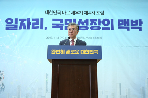 [일요신문] 문재인 전 더불어민주당 대표가 18일 오후 여의도 국회 의원회관에서 정책공간 국민성장 주최로 열린 ‘대한민국 바로 세우기 제4차 포럼’에 참석해 있다. 이 날 기조연설에 나선 문 전 대표는 “공공부문 충원과 노동시간 단축 등으로 총131만개 이상의 일자리를 창출하겠다”고 밝혔다.