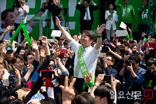 인천 유권자들의 환호 속 안철수